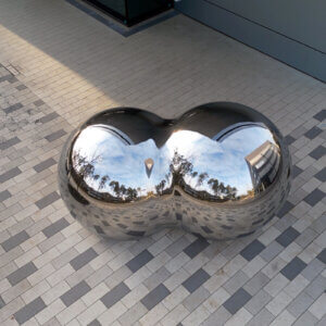 The sculptural duo Synergie is located in front of the entrance and within the atrium of the HI ERN research building.