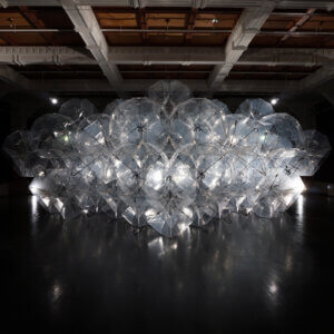 The DROP is a work from the series Rain in Kyoto. A floating plinth forms the stage for a swelling drop of water emerging from its underside. As the drop grows, a cone of light expands with it, unfolding into a vibrant caustic projection.